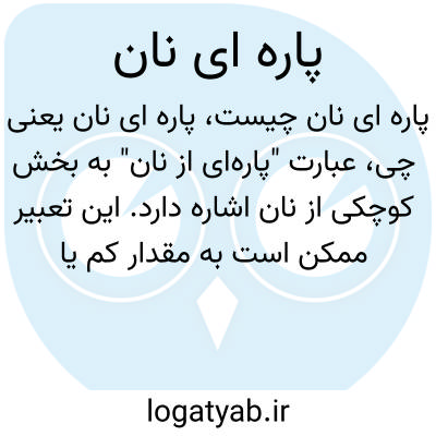عبارت "پاره‌ای از نان" به بخش کوچکی از نان اشاره دارد. این تعبیر ممکن است به مقدار کم یا قسمتی از یک نان کامل دلالت کند و می‌تواند در گفتگوهای روزمره برای نشان دادن کمیت کوچکی از نان استفاده شود.