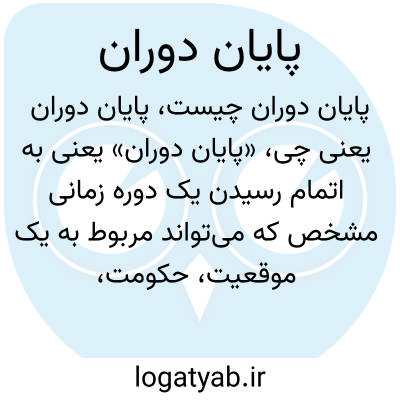 «پایان دوران» یعنی به اتمام رسیدن یک دوره زمانی مشخص که میتواند مربوط به یک موقعیت، حکومت، زندگی یا هر نکتهای که وصف زمان دارد باشد. این عبارت به معنای خاتمه یک مرحله و آغاز مرحلهای نو است.