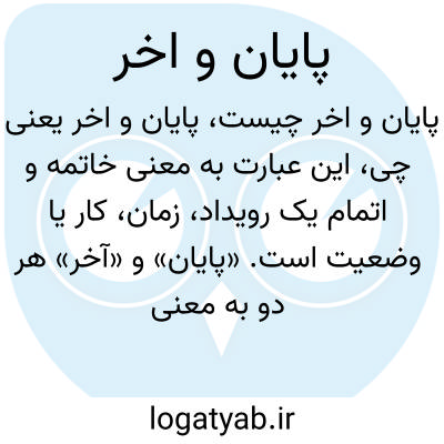 این عبارت به معنی خاتمه و اتمام یک رویداد، زمان، کار یا وضعیت است. «پایان» و «آخر» هر دو به معنی اتمام و ختم میباشند و در کنار هم برای تاکید به کار برده میشوند.