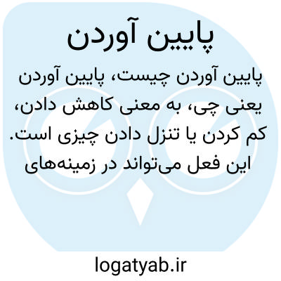 به معنی کاهش دادن، کم کردن یا تنزل دادن چیزی است. این فعل میتواند در زمینههای مختلفی مثل پایین آوردن قیمت، سطح یا میزان یک چیز به کار رود.