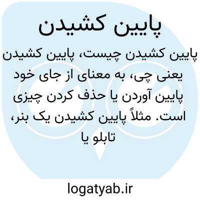به معنای از جای خود پایین آوردن یا حذف کردن چیزی است. مثلاً پایین کشیدن یک بنر، تابلو یا برچسب به معنای برداشتن یا ترک کردن آن است.