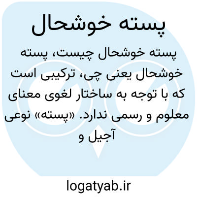 ترکیبی است که با توجه به ساختار لغوی معنای معلوم و رسمی ندارد. «پسته» نوعی آجیل و «خوشحال» صفت حالت ذوق یا شادی است؛ اما ترکیب این دو در زبان فارسی معنای دقیقی ندارد.