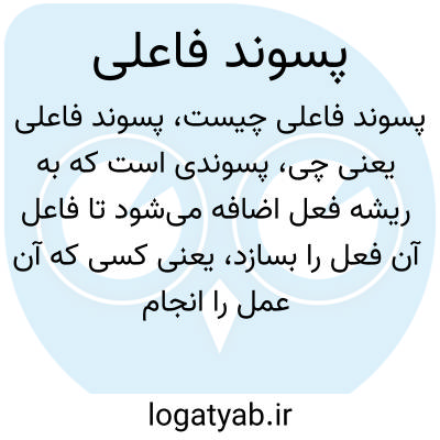 پسوندی است که به ریشه فعل اضافه می‌شود تا فاعل آن فعل را بسازد، یعنی کسی که آن عمل را انجام می‌دهد. مانند پسوند "-ان" در "کاروان" (کسی که کار می‌کند) اگرچه در مثال محض کاربرد آن ممکن متفاوت باشد، اما به طور کلی پسوندهای فاعلی در زبان فارسی با ایجاد نقش فاعلی شناخته می‌شوند.