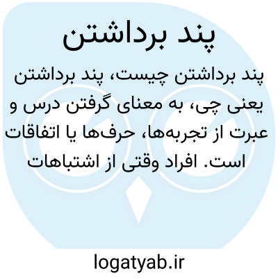 به معنای گرفتن درس و عبرت از تجربه‌ها، حرف‌ها یا اتفاقات است. افراد وقتی از اشتباهات دیگران یا گفته‌های قدیمی درس می‌گیرند، گفته می‌شود پند برداشته‌اند.