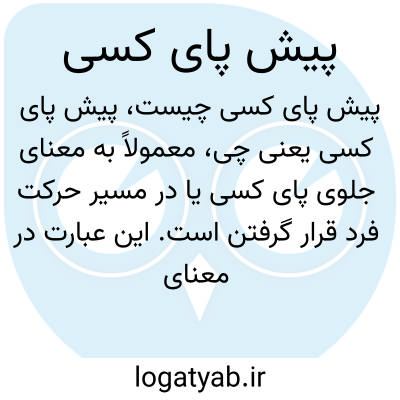معمولاً به معنای جلوی پای کسی یا در مسیر حرکت فرد قرار گرفتن است. این عبارت در معنای لغوی، به موقعیتی که جلو راه کسی قرار گرفتهاند اشاره دارد و ممکن است به صورت استعاری برای موانعی که در مسیر کسی هستند به کار رود.