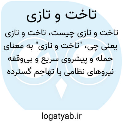 "تاخت و تازی" به معنای حمله و پیشروی سریع و بی‌وقفه نیروهای نظامی یا تهاجم گسترده است. این عبارت تداعی‌کننده حرکات تند و بی‌محابای ارتش یا گروهی است که با قدرت و سرعت وارد قلمرو دشمن می‌شوند و آنجا را تصرف می‌کنند یا تخریب می‌کنند.