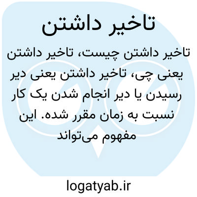 تاخیر داشتن یعنی دیر رسیدن یا دیر انجام شدن یک کار نسبت به زمان مقرر شده. این مفهوم می‌تواند در موقعیت‌های مختلف مانند رفتن به سر کار، رسیدن به یک قرار ملاقات یا انجام پروژه‌های کاری به کار رود و معمولاً به معنی دیرکرد یا عقب افتادن از برنامه زمانی است.