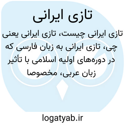تازی ایرانی به زبان فارسی که در دورههای اولیه اسلامی با تأثیر زبان عربی، مخصوصا در ایران رواج پیدا کرده است، اشاره دارد. واژه «تازی» در اینجا میتواند به معنای عرب بودن یا چیزی مرتبط با فرهنگ عربی باشد که در ایران ترکیب یا نفوذ یافته است.