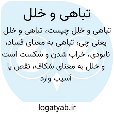 تباهی به معنای فساد، نابودی، خراب شدن و شکست است و خلل به معنای شکاف، نقص یا آسیب وارد شده در یک نظام یا ساختار است. ترکیب این دو کلمه نشان‌دهنده وضعیتی است که در آن هم فساد و هم اشکال یا نقص وجود دارد.