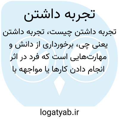 برخورداری از دانش و مهارت‌هایی است که فرد در اثر انجام دادن کارها یا مواجهه با موقعیت‌های مختلف در گذشته کسب کرده است. تجربه داشتن به معنای آموختن و افزایش قابلیت‌ها و توانایی‌ها از طریق عمل و مشاهده است.