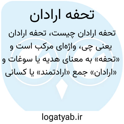 واژهای مرکب است و «تحفه» به معنای هدیه یا سوغات و «ارادان» جمع «ارادتمند» یا کسانی که ارادت و محبت دارند. پس «تحفه ارادان» به معنای هدیه یا پیشکشی است که از طرف دوستان یا ارادتمندان به کسی داده میشود.