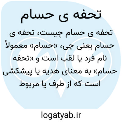 «حسام» معمولاً نام فرد یا لقب است و «تحفه حسام» به معنای هدیه یا پیشکشی است که از طرف یا مربوط به شخصی به نام حسام باشد. همچنین ممکن است در متون خاصی به عنوان نام یک اثر یا چیز خاص به کار رفته باشد.