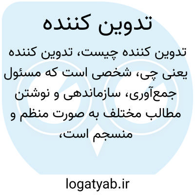 شخصی است که مسئول جمعآوری، سازماندهی و نوشتن مطالب مختلف به صورت منظم و منسجم است، مانند کسی که یک کتاب، قانون یا گزارش را تدوین میکند.