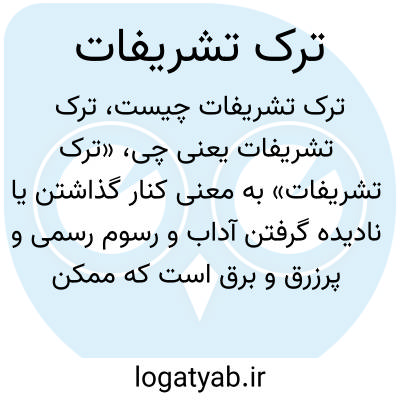 «ترک تشریفات» به معنی کنار گذاشتن یا نادیده گرفتن آداب و رسوم رسمی و پرزرق و برق است که ممکن است در ملاقات‌ها، مراسم یا جلسات رسمی رعایت شود. فردی که ترک تشریفات می‌کند، معمولاً به صورت غیررسمی و بدون رعایت تشریفات معمول رفتار می‌نماید.
