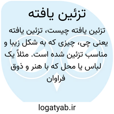 چیزی که به شکل زیبا و مناسب تزئین شده است. مثلاً یک لباس یا محل که با هنر و ذوق فراوان آراسته و مجهز شده و جلوه‌ای زیبا به خود گرفته است.