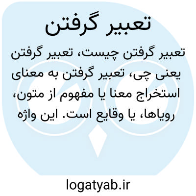 تعبیر گرفتن به معنای استخراج معنا یا مفهوم از متون، رویاها، یا وقایع است. این واژه بیشتر در حوزه‌های روانشناسی، ادبیات و فرهنگ عامه به کار می‌رود و معمولاً به فهم نمادین یا تفسیر معنایی اشاره دارد.