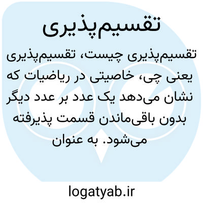 خاصیتی در ریاضیات که نشان میدهد یک عدد بر عدد دیگر بدون باقیماندن قسمت پذیرفته میشود. به عنوان مثال، عدد 10 بر 2 تقسیمپذیر است چون خارج قسمت آن عدد صحیح است.