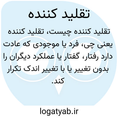 فرد یا موجودی که عادت دارد رفتار، گفتار یا عملکرد دیگران را بدون تغییر یا با تغییر اندک تکرار کند. تقلید در یادگیری، فرهنگ و آموزش نقش دارد و میتواند مثبت یا منفی باشد.