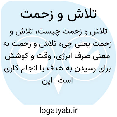 تلاش و زحمت به معنی صرف انرژی، وقت و کوشش برای رسیدن به هدف یا انجام کاری است. این دو واژه معمولاً به همراه هم به کار می‌روند و نشان‌دهنده پشتکار و سخت‌کوشی هستند.