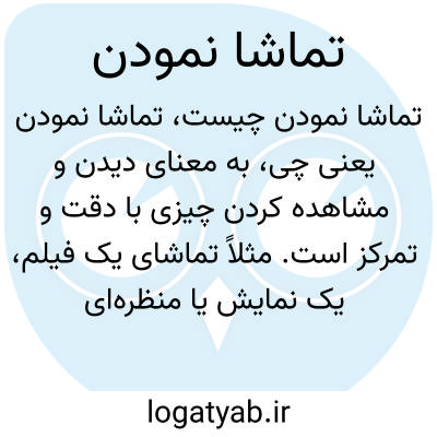 به معنای دیدن و مشاهده کردن چیزی با دقت و تمرکز است. مثلاً تماشای یک فیلم، یک نمایش یا منظرهای طبیعی که به صورت آگاهانه و با دقت انجام میشود.