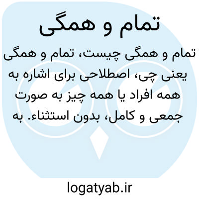اصطلاحی برای اشاره به همه افراد یا همه چیز به صورت جمعی و کامل، بدون استثناء. به طور مثال وقتی میگویند “تمام و همگی آمدند”، یعنی همه بدون کم و کاست حضور داشتند.