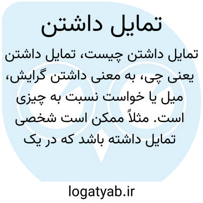 به معنی داشتن گرایش، میل یا خواست نسبت به چیزی است. مثلاً ممکن است شخصی تمایل داشته باشد که در یک رشته ورزشی شرکت کند یا به یک غذا علاقه‌مند باشد.