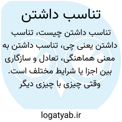 تناسب داشتن به معنی هماهنگی، تعادل و سازگاری بین اجزا یا شرایط مختلف است. وقتی چیزی با چیزی دیگر تناسب دارد، به این معنی است که آن دو با یکدیگر مناسب و همخوان هستند و در کنار هم به درستی عمل می‌کنند یا دیده می‌شوند.
