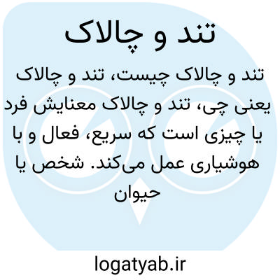 تند و چالاک معنایش فرد یا چیزی است که سریع، فعال و با هوشیاری عمل میکند. شخص یا حیوان تند و چالاک به راحتی حرکات سریع و انعطافپذیر دارد و در انجام کارها توانمند است.