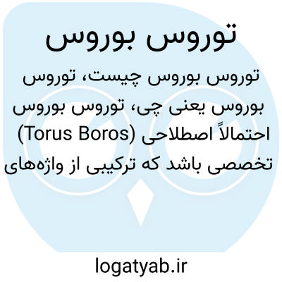 توروس بوروس (Torus Boros) احتمالاً اصطلاحی تخصصی باشد که ترکیبی از واژه‌های "توروس" و "بوروس" است. توروس در ریاضیات یک شکل حلقه‌ای است که مشابه دونات است. اگر ترکیب این دو واژه معنای مشخص دارد، باید در متون تخصصی ریاضیات یا فیزیک جستجو شود.