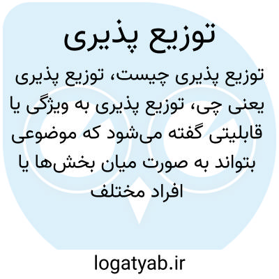 توزیع پذیری به ویژگی یا قابلیتی گفته می‌شود که موضوعی بتواند به صورت میان بخش‌ها یا افراد مختلف تقسیم و پخش شود؛ مانند توزیع پذیری منابع، اطلاعات یا محصولات در جامعه یا سازمان.
