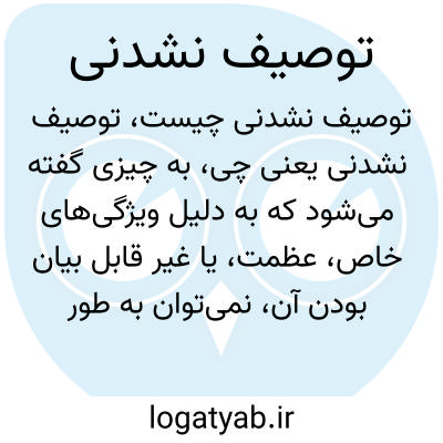به چیزی گفته می‌شود که به دلیل ویژگی‌های خاص، عظمت، یا غیر قابل بیان بودن آن، نمی‌توان به طور کامل و دقیق آن را با کلمات بیان کرد. مثلاً زیبایی بسیار زیاد یا حسی بی‌نهایت عمیق ممکن است توصیف نشدنی باشد.