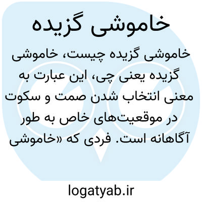این عبارت به معنی انتخاب شدن صمت و سکوت در موقعیتهای خاص به طور آگاهانه است. فردی که «خاموشی گزیده» دارد، عمداً و با اختیار تصمیم گرفته است که صحبت نکند یا واکنشی نشان ندهد تا به هدف یا حکمت خاصی دست یابد.