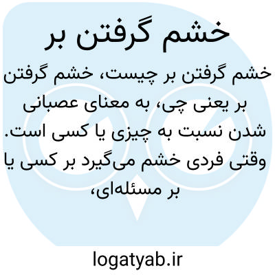 به معنای عصبانی شدن نسبت به چیزی یا کسی است. وقتی فردی خشم می‌گیرد بر کسی یا بر مسئله‌ای، یعنی احساس عصبانیت و ناراحتی شدید پیدا می‌کند که معمولاً واکنشی به رفتار، گفتار یا وضعیتی نامناسب است.