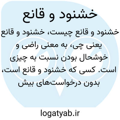 به معنی راضی و خوشحال بودن نسبت به چیزی است. کسی که خشنود و قانع است، بدون درخواستهای بیش از حد، از وضع موجود خود رضایت دارد و به آنچه دارد قناعت میکند.