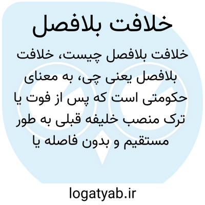 به معنای حکومتی است که پس از فوت یا ترک منصب خلیفه قبلی به طور مستقیم و بدون فاصله یا وقفه به جانشین بعدی انتقال می‌یابد. خلافت بلافصل نشان‌دهنده استمرار قدرت و ولایت در سلسله‌ای خاص است.