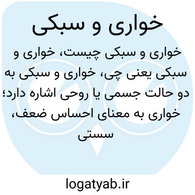 خواری و سبکی به دو حالت جسمی یا روحی اشاره دارد؛ خواری به معنای احساس ضعف، سستی یا بی‌حوصلگی و سبکی معمولا به احساس سنگینی یا فشار کم در بدن گفته می‌شود. این اصطلاح گاهی برای توصیف حالت ضعف موقتی یا کسالت استفاده می‌شود.