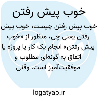 منظور از «خوب پیش رفتن» انجام یک کار یا پروژه یا اتفاق به گونهای مطلوب و موفقیتآمیز است. وقتی میگوییم کار «خوب پیش رفت»، یعنی مراحل آن بدون مشکل یا با موفقیت انجام شده و نتایج رضایتبخش بوده است.