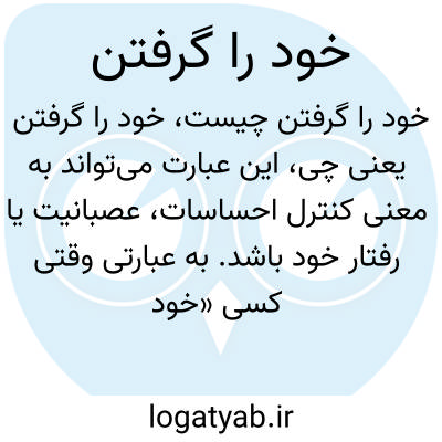 این عبارت می‌تواند به معنی کنترل احساسات، عصبانیت یا رفتار خود باشد. به عبارتی وقتی کسی «خود را می‌گیرد» یعنی می‌تواند هیجانات و رفتارهای خود را تحت کنترل قرار دهد و رفتار سنجیده‌ای از خود نشان دهد.