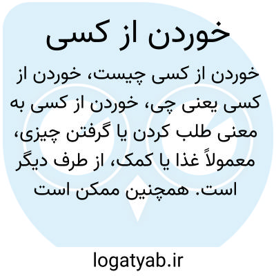 خوردن از کسی به معنی طلب کردن یا گرفتن چیزی، معمولاً غذا یا کمک، از طرف دیگر است. همچنین ممکن است به معنی گرفتن بهره یا استفاده از امکانات و داشتههای دیگران به صورت غیرمستقیم یا مستقیم باشد.