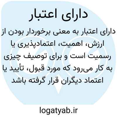 عبارت «دارای اعتبار» در زبان فارسی به معنای برخوردار بودن از ارزش، اهمیت، اعتمادپذیری یا رسمیت است و برای توصیف چیزی به کار می‌رود که مورد قبول، تأیید یا اعتماد دیگران قرار گرفته باشد. این اصطلاح می‌تواند در زمینه‌های مختلفی مانند اسناد، افراد، مؤسسات یا گفته‌ها استفاده شود و نشان‌دهنده آن است که آن مورد از نظر قانونی، اجتماعی یا علمی قابل پذیرش است. برای مثال، وقتی گفته می‌شود یک مدرک دارای اعتبار است، یعنی از سوی مراجع رسمی تأیید شده و قابل استناد می‌باشد. همچنین اگر فردی دارای اعتبار باشد، به این معناست که دیگران به او اعتماد دارند و سخن یا عمل او ارزشمند و قابل اتکا تلقی می‌شود. این واژه در متون رسمی، اداری و علمی کاربرد فراوانی دارد و بیانگر سطحی از اطمینان و پذیرش عمومی است. «اعتبار» می‌تواند به زمان نیز مربوط باشد، مانند زمانی که می‌گویند یک کارت تا تاریخ مشخصی دارای اعتبار است، یعنی در آن بازه زمانی قابل استفاده است. در مجموع، این عبارت به هر چیزی گفته می‌شود که ارزش، رسمیت یا قابلیت اعتماد داشته باشد و بتوان به آن استناد یا تکیه کرد.