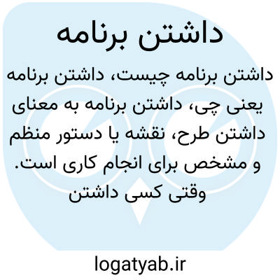داشتن برنامه به معنای داشتن طرح، نقشه یا دستور منظم و مشخص برای انجام کاری است. وقتی کسی داشتن برنامه داشته باشد، یعنی هدف‌ها و مراحل کار خود را به صورت سازمان‌یافته و مرتب تنظیم کرده است تا به نتیجه مطلوب برسد.
