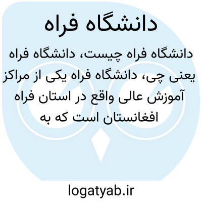 دانشگاه فراه یکی از مراکز آموزش عالی واقع در استان فراه افغانستان است که به ارائه رشتههای مختلف تحصیلی میپردازد. این دانشگاه نقش مهمی در افزایش سطح علمی و پژوهشی منطقه فراه دارد و به تربیت دانشجویان در حوزههای مختلف علوم انسانی، فنی، و اجتماعی میپردازد.