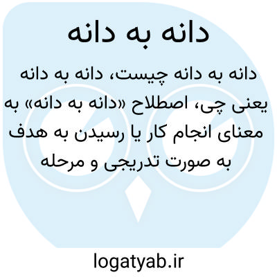 اصطلاح «دانه به دانه» به معنای انجام کار یا رسیدن به هدف به صورت تدریجی و مرحله به مرحله است. این عبارت معمولاً در متون ادبی یا گفتار عامیانه به کار می‌رود و نشان می‌دهد که برای موفقیت باید گام به گام و با صبر پیش رفت.