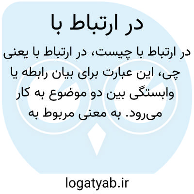 این عبارت برای بیان رابطه یا وابستگی بین دو موضوع به کار می‌رود. به معنی مربوط به یا در زمینه موضوع خاصی بودن است. مثلا "در ارتباط با پروژه" یعنی مطالب یا اطلاعاتی که مربوط به پروژه است.