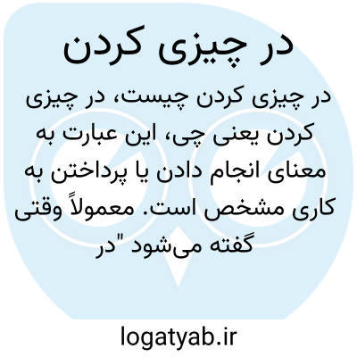 این عبارت به معنای انجام دادن یا پرداختن به کاری مشخص است. معمولاً وقتی گفته میشود "در فلان چیز کردن" منظور مشغول شدن به انجام کاری است، مانند "در مطالعه کردن" یعنی مشغول مطالعه بودن.