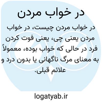 یعنی فوت کردن فرد در حالی که خواب بوده، معمولاً به معنای مرگ ناگهانی یا بدون درد و علائم قبلی.