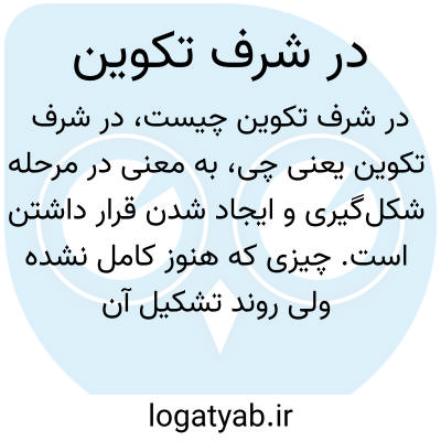 به معنی در مرحله شکلگیری و ایجاد شدن قرار داشتن است. چیزی که هنوز کامل نشده ولی روند تشکیل آن آغاز شده و در حال تکامل است، مانند ایدهای که به تدریج به وجود میآید.