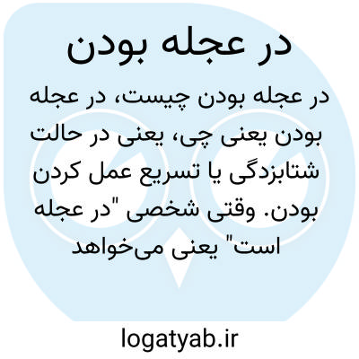 یعنی در حالت شتابزدگی یا تسریع عمل کردن بودن. وقتی شخصی "در عجله است" یعنی می‌خواهد کاری را سریع‌تر انجام دهد و آرامش ندارد.