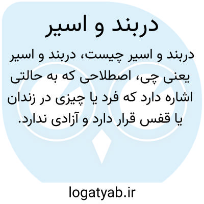 اصطلاحی که به حالتی اشاره دارد که فرد یا چیزی در زندان یا قفس قرار دارد و آزادی ندارد. دربند به معنای محدود و محبوس بودن است و اسیر نیز به کسی گفته می‌شود که به صورت اجباری تحت کنترل دیگری است.
