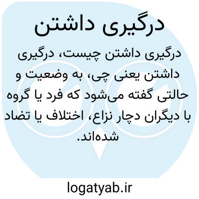 به وضعیت و حالتی گفته میشود که فرد یا گروه با دیگران دچار نزاع، اختلاف یا تضاد شدهاند. «درگیری داشتن» میتواند جسمی، لفظی یا روانی باشد و معمولاً نشاندهنده وجود مشکلات و بیثباتی در روابط است.